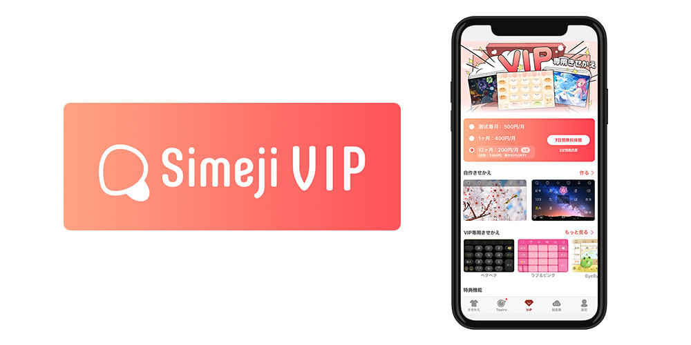 ・『Simeji VIP』を新規登録の場合、月額400円(税込)でご利用いただけます。