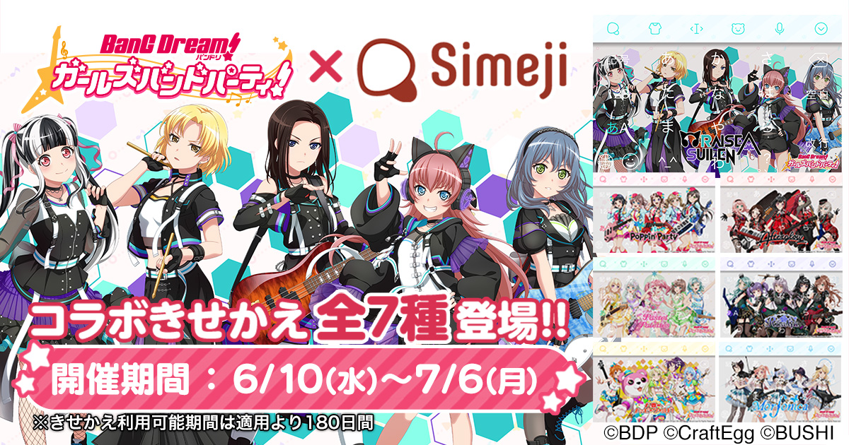 ダウンロードNo.1キーボードアプリ*「Simeji」、 大人気リズム&アドベンチャーゲーム「バンドリ! ガールズバンドパーティ!」との 期間限定コラボ決定!