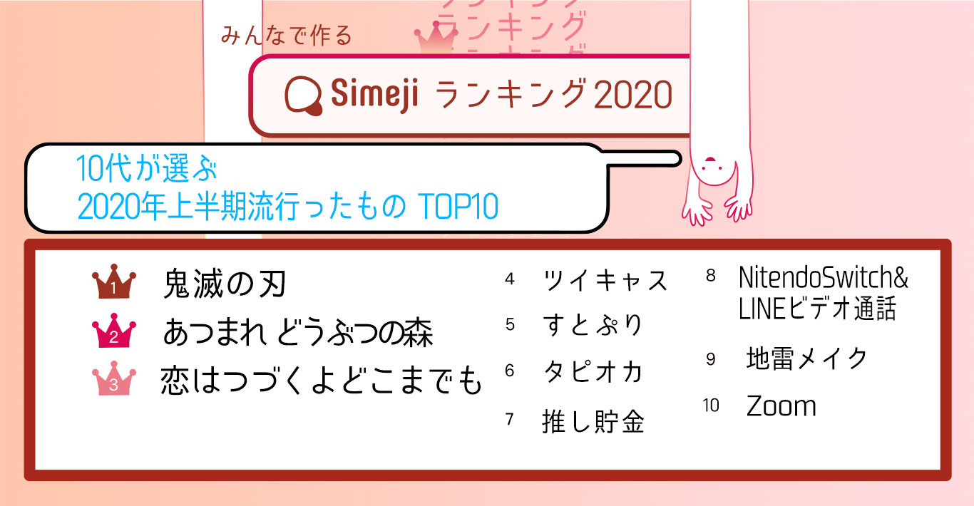 10代のイマドキを調査! 「2020年上半期流行ったものTOP10」 Simejiランキングが発表!!