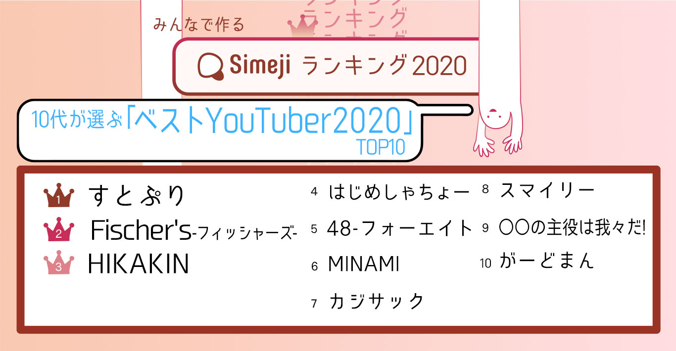 ネットの主役は誰だ? 10代2,600人が選ぶ「ベストYouTuber 2020」 TOP10 Simejiランキングが発表!!