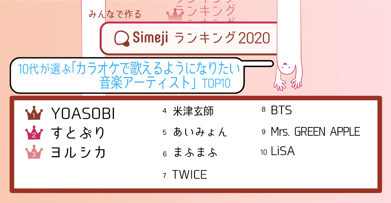 10代2,000人が選ぶ 「カラオケで歌えるようになりたい音楽アーティストTOP10」 Simejiランキングが発表!!
