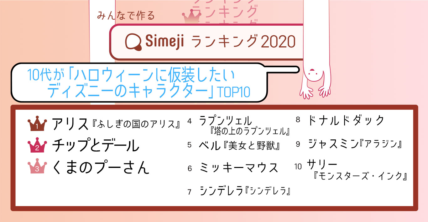 トリック・オア・トリート! Simejiランキング10代1,600人が選ぶ 「ハロウィーンに仮装したいディズニーのキャラクター」TOP10