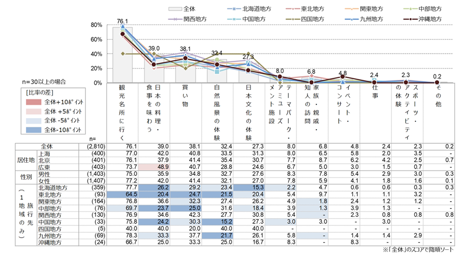 広東省からの旅行者は、「日本の料理・食事を味わう」が約5割。