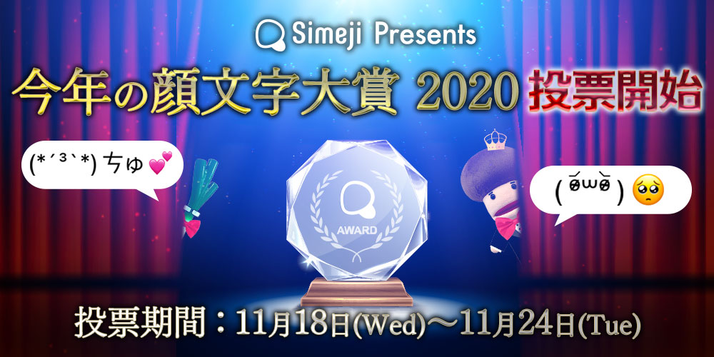 最も今年らしい顔文字とは!? 「Simeji 今年の顔文字大賞2020」投票開始!!