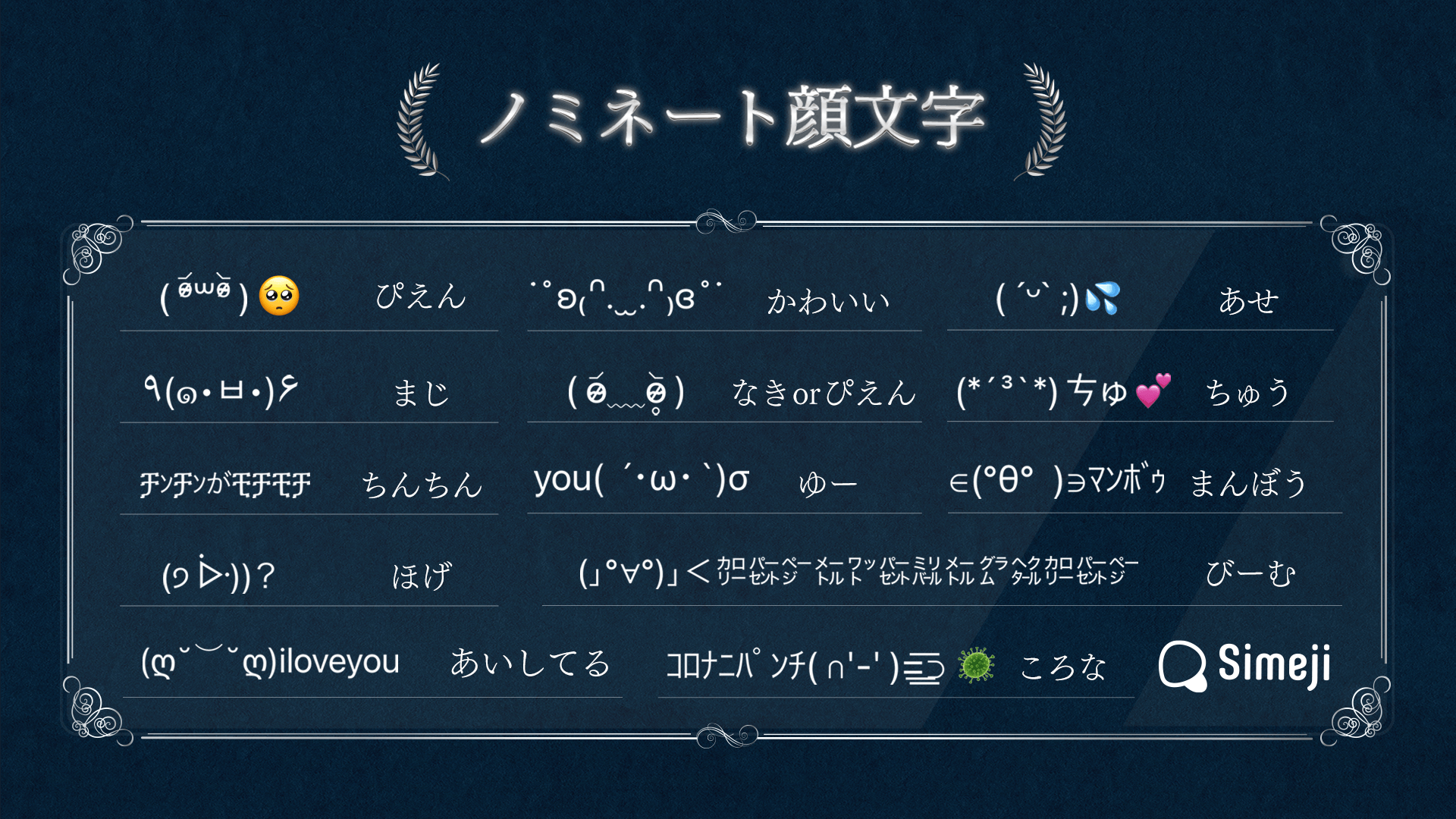 「Simeji 今年の顔文字大賞2020」ノミネート一覧は、こちらからご覧いただけます。