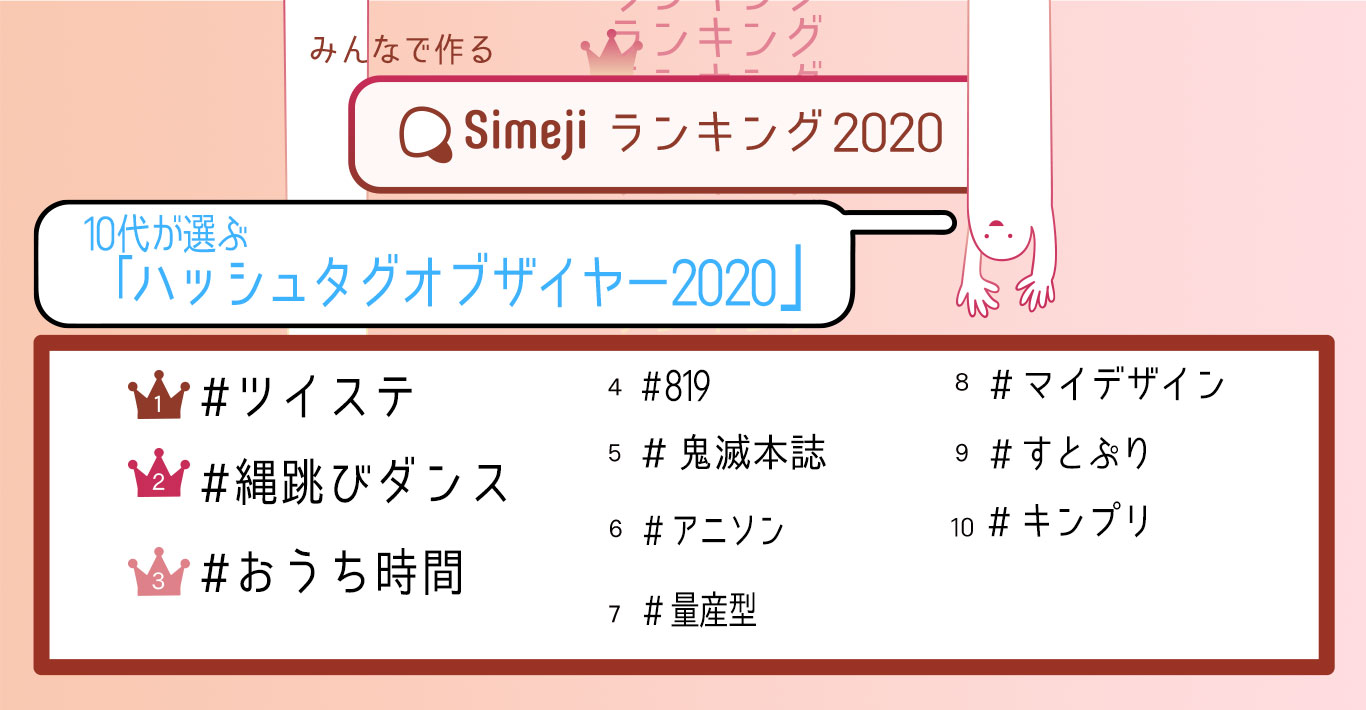 いくつご存知ですか? 10代2,300人が選ぶ「ハッシュタグオブザイヤー2020」TOP10 Simejiランキングが発表!!