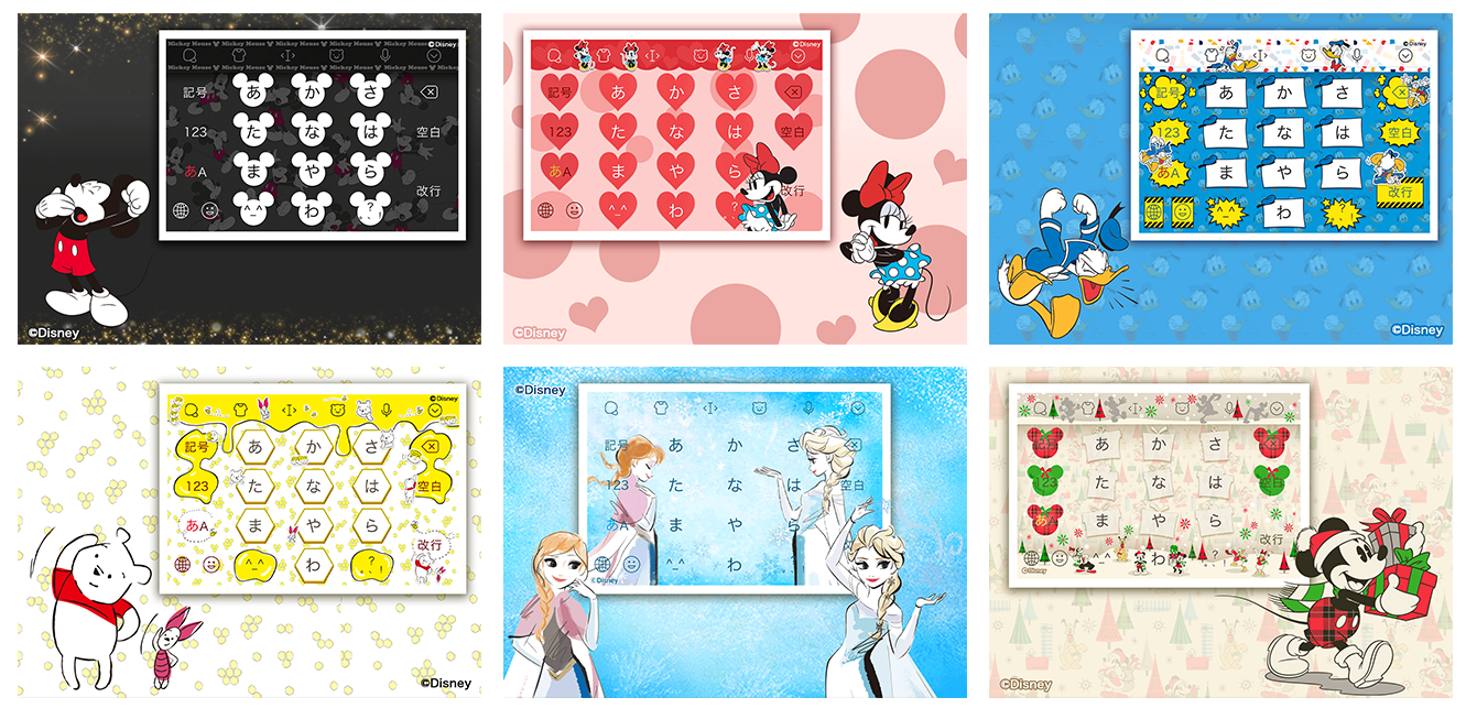 「Simeji」では、友達や恋人とスマホのキーボードをお揃いでお楽しみいただけるディズニーキャラクターのきせかえを提供しています。「ミッキーマウス」、『くまのプーさん』や『アナと雪の女王』など毎月Simejiに登場するディズニーの世界観溢れる豪華なデザインを是非チェックしてみてくださいね!(https://simeji.me/disney-kisekae/)