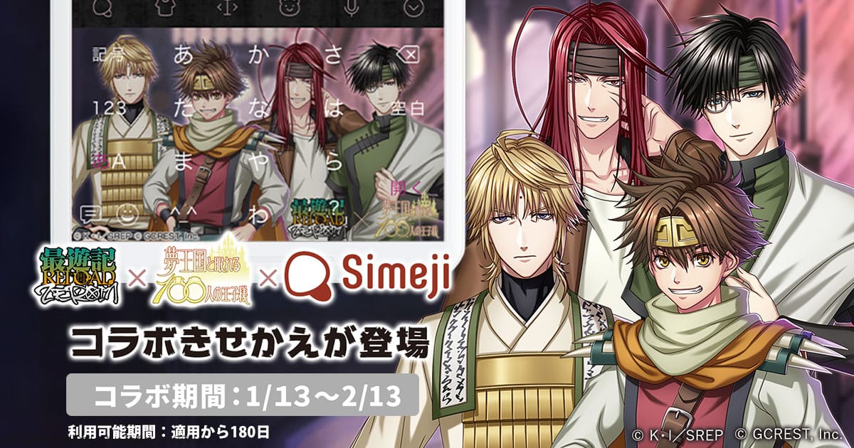 ダウンロードNo.1キーボードアプリ*「Simeji」、 女性向けスマホパズルRPG『夢王国と眠れる100人の王子様』と TVアニメ『最遊記RELOAD -ZEROIN-』との期間限定コラボ開始!
