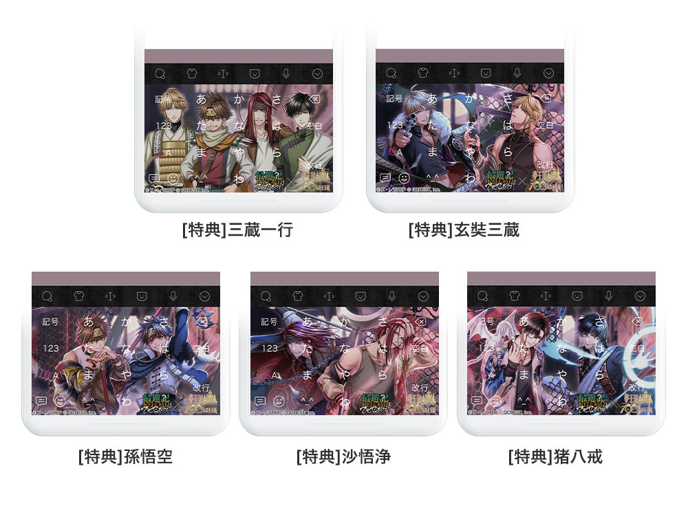 本コラボレーションでは、ミッションクリアにより、『夢王国と眠れる100人の王子様』とコラボする『最遊記RELOAD -ZEROIN-』の登場キャラクターをあしらったSimejiオリジナルのコラボきせかえデザイン5種をダウンロードできます。