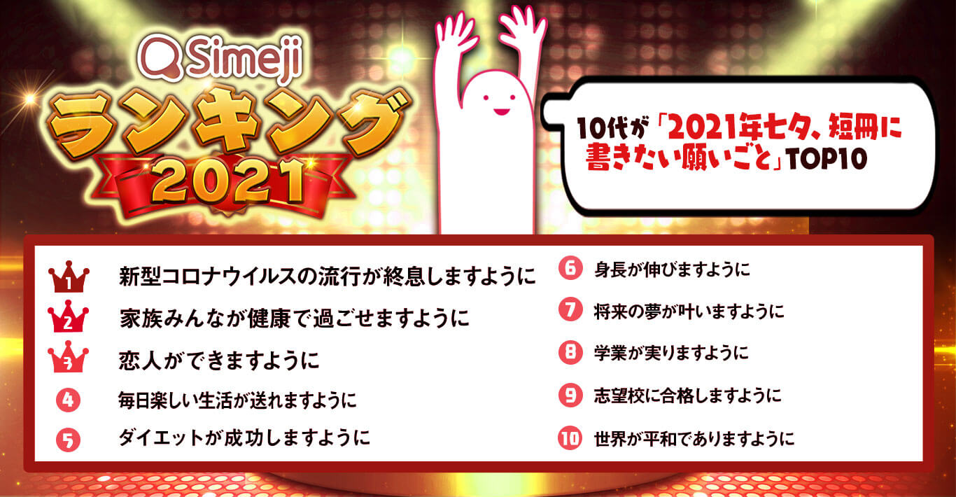 Simejiランキング 10代3,550人が選ぶ 「2021年七夕、短冊に書きたい願いごとTOP10」