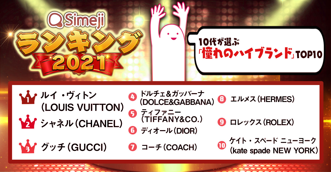 Simejiランキング10代2,000人が選ぶ 「憧れのハイブランドTOP10」