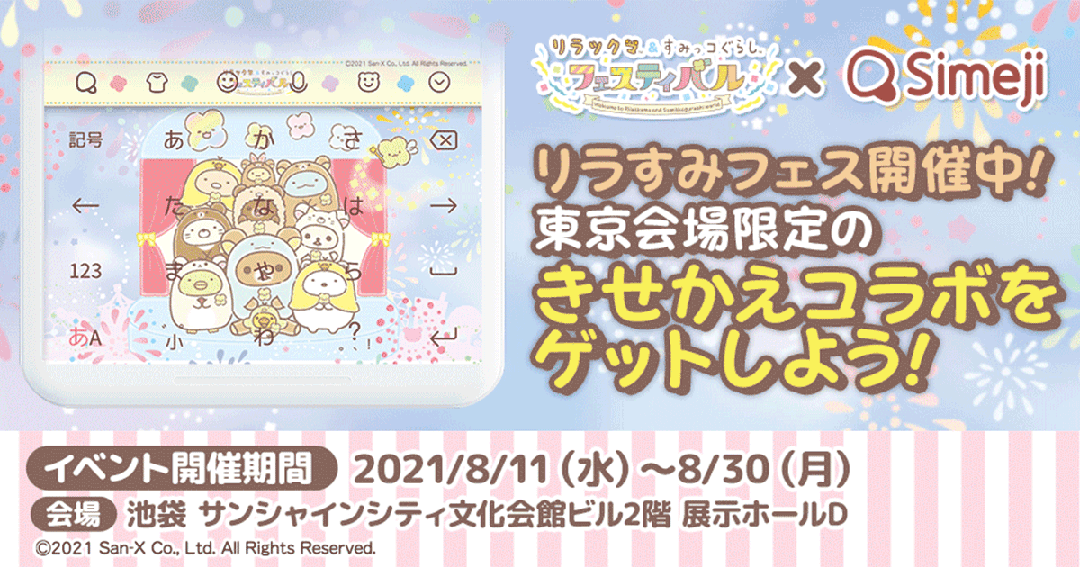 ダウンロードNo.1キーボードアプリ*「Simeji」、 展覧会「リラックマ&すみっコぐらしフェスティバル」とコラボ開始!