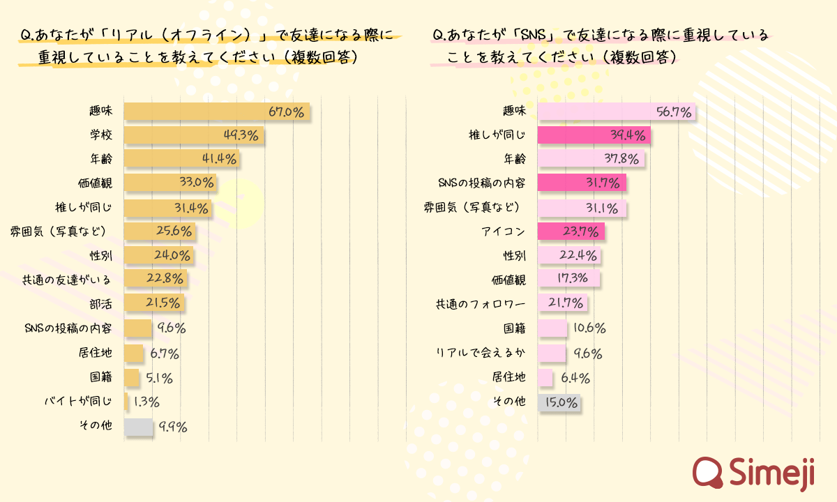 2)学校でつくる友達とSNSでつくる友達では、求めるものが違う!?友達作りで重視することは「推しが同じ」39.4%。