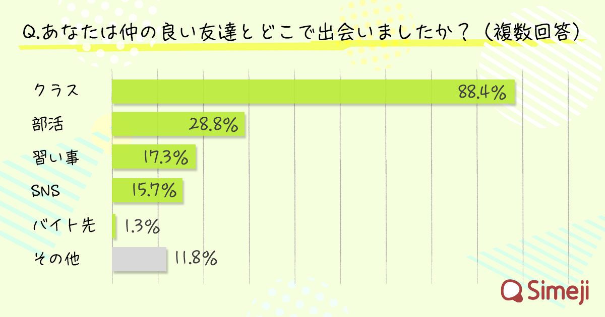 1.友達との出会いの場所は「SNS(15.7%)」。SNSで友達を作ることが当たり前のZ世代。