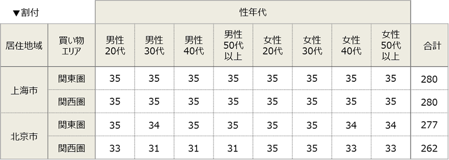 調査対象: 男女20歳以上、上海市、北京市の居住者、直近1年以内に日本旅行で買物をしたことがある