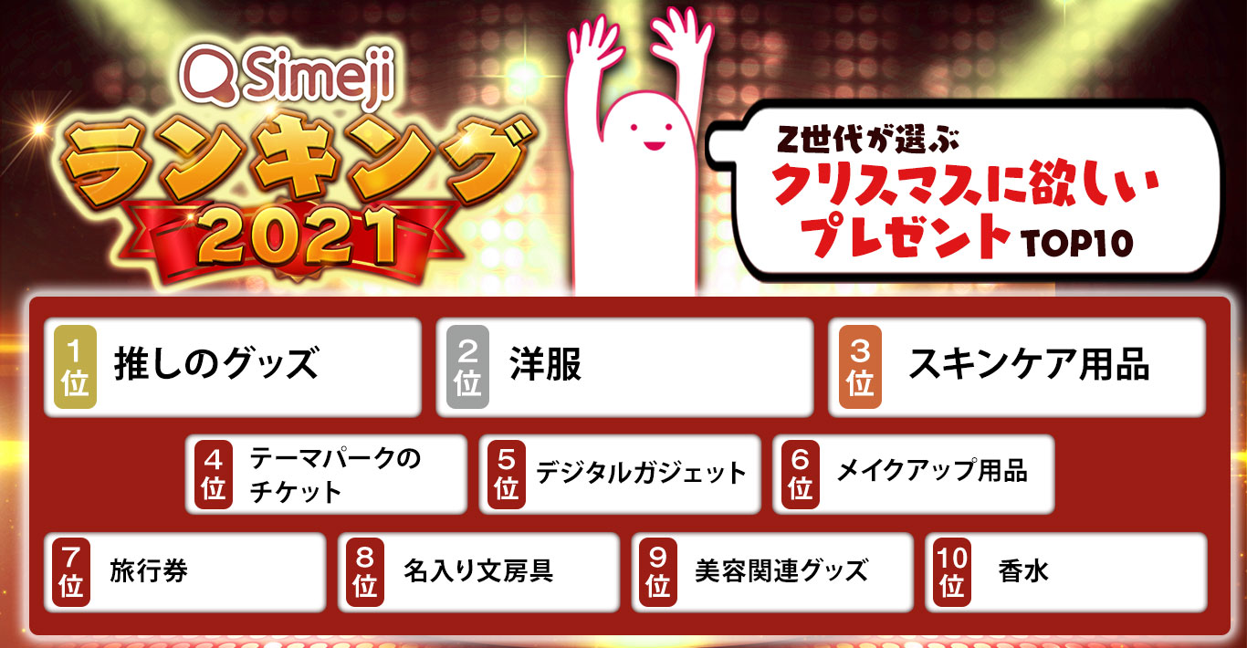 【Simejiランキング】Z世代が選ぶ 「クリスマスに欲しいプレゼントTOP10」