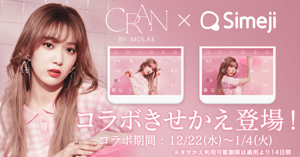 Z世代に大人気!キーボードアプリ「Simeji」、 宮脇咲良さん初のプロデュースコスメブランド 『CRAN BY MOLAK(クランバイモラク)』との期間限定コラボを開始!
