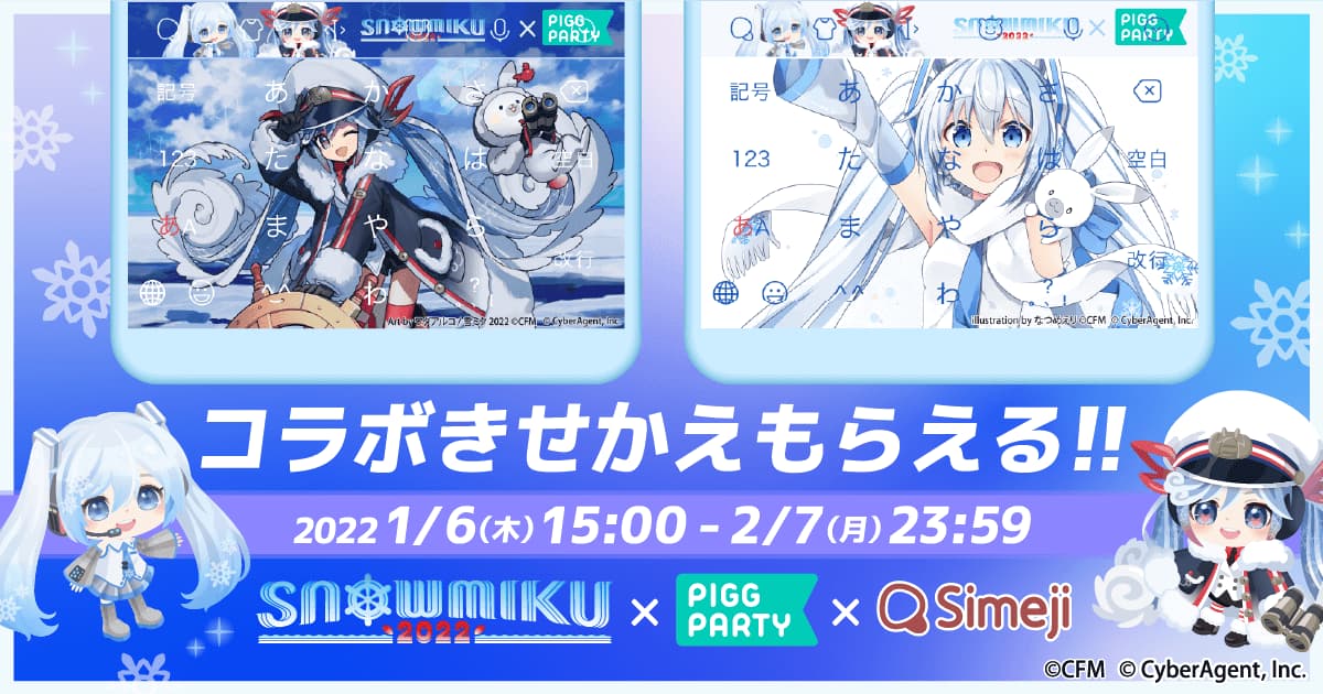 Z世代に大人気!キーボードアプリ「Simeji」、 アバターコミュニティアプリ「ピグパーティ」と「SNOW MIKU2022」との 期間限定コラボ開始!