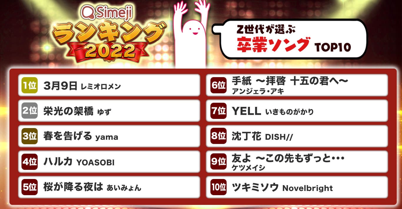 【Simejiランキング】Z世代が選ぶ 「卒業ソングTOP10」