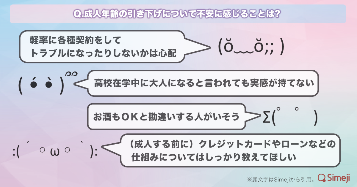 3. 「高校在学中のため、”大人”という実感が持てない」「契約トラブルに巻き込まれないか」など不安が多い!?