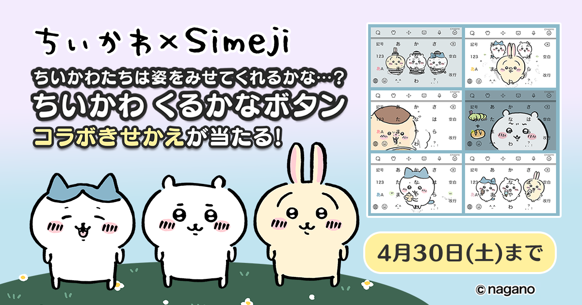 Z世代に大人気!キーボードアプリ「Simeji」、 ナガノ氏が描く『ちいかわ』とのコラボキャンペーンを実施!