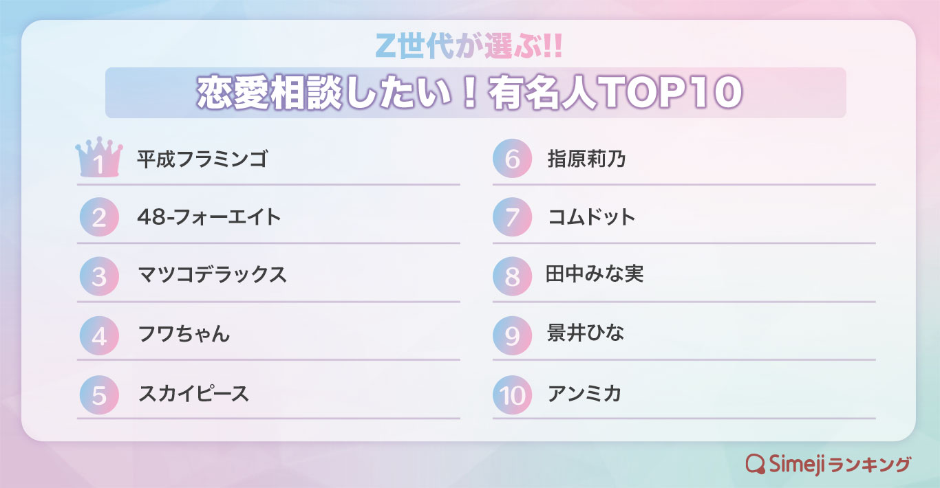 Z世代が選ぶ!!「恋愛相談をしたい!有名人TOP10」