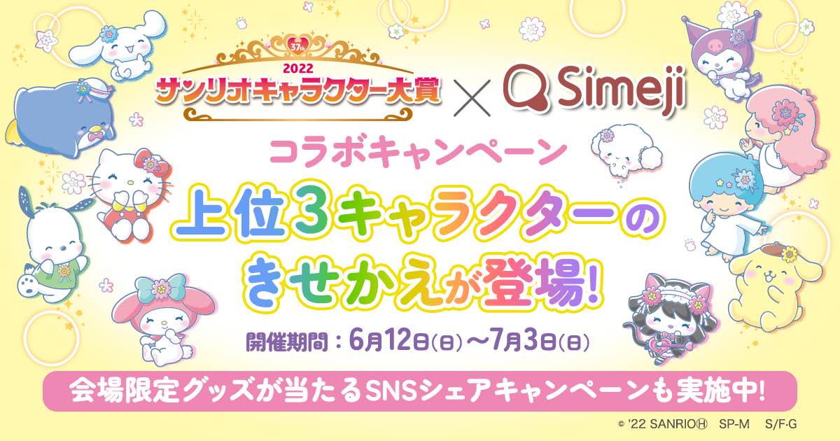 Z世代に大人気!キーボードアプリ「Simeji」、「2022年サンリオキャラクター大賞 結果発表会」にて発表される 人気キャラクターTOP3とのコラボを実施!