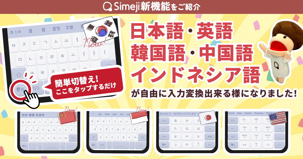 Z世代に大人気!キーボードアプリ「Simeji」、 新たに3ヶ国語に対応!新機能「多言語キーボード」(韓国語・中国語・インドネシア語)をリリース。