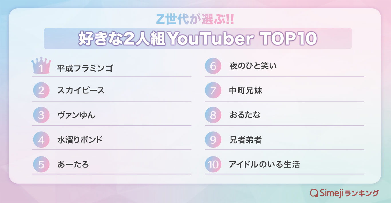 【Simejiランキング】Z世代が選ぶ!!「好きな2人組YouTuberTOP10」