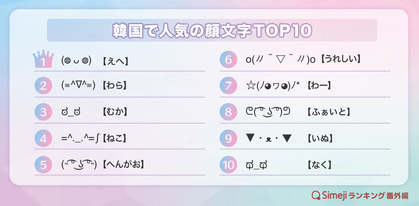 【Simejiランキング番外編】「韓国で人気の顔文字TOP10」