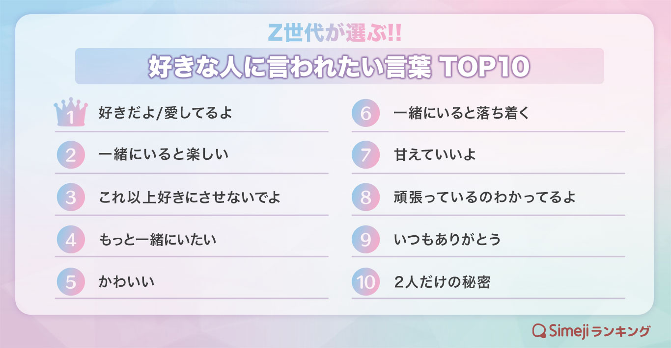 【Simejiランキング】Z世代が選ぶ!! 「好きな人に言われたい言葉TOP 10」