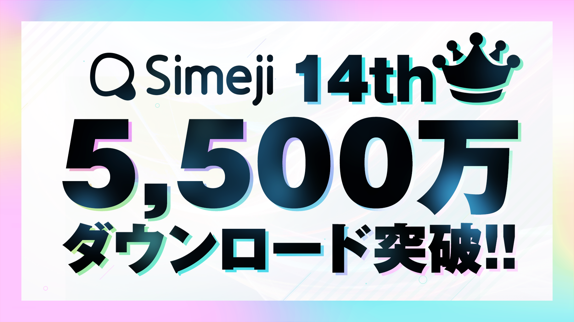 日頃よりSimejiをご利用頂きまして誠にありがとうございます。Z世代を中心に幅広い世代からご愛顧いただき、本日Simejiは5,500万DLを突破しました。コミュニケーションの幅も多様化していく中で、Simejiは、ただ文字を入力するだけに留まらない「たのしくかしこいキーボード」として今後も皆様の楽しいコミュニケーションのお手伝いができればと願っています。新機能も続々登場しているのでぜひお楽しみください!