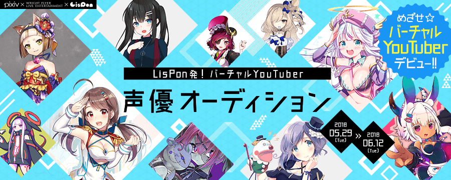 本オーディションは本年、4月24日に株式会社Wright Flyer Live Entertainment(本社:東京都港区、代表取締役社長:荒木英士、以下「WFLE」)、ピクシブ株式会社(本社:東京都渋谷区、代表取締役社長:永田寛哲、以下「ピクシブ」)と共同で発表した【今夏に5人の選抜されたバーチャルYouTuberがデビュー!「pixiv × LisPon × WFLE バーチャルYouTuber共同オーディション」開催決定】のなかの声優オーディションです。すでに選ばれたお題となるキャラクターのビジュアルと、キャラクター設定を元に音声を収録し、応募していただきます。
