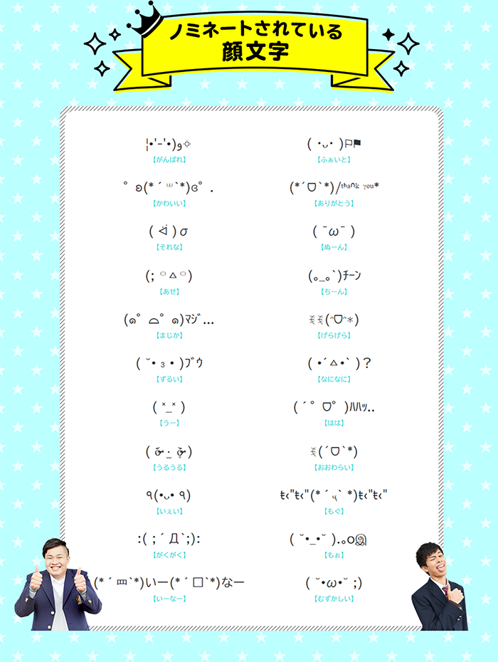 今年の顔文字大賞ノミネート一覧はこちらからご覧頂けます。