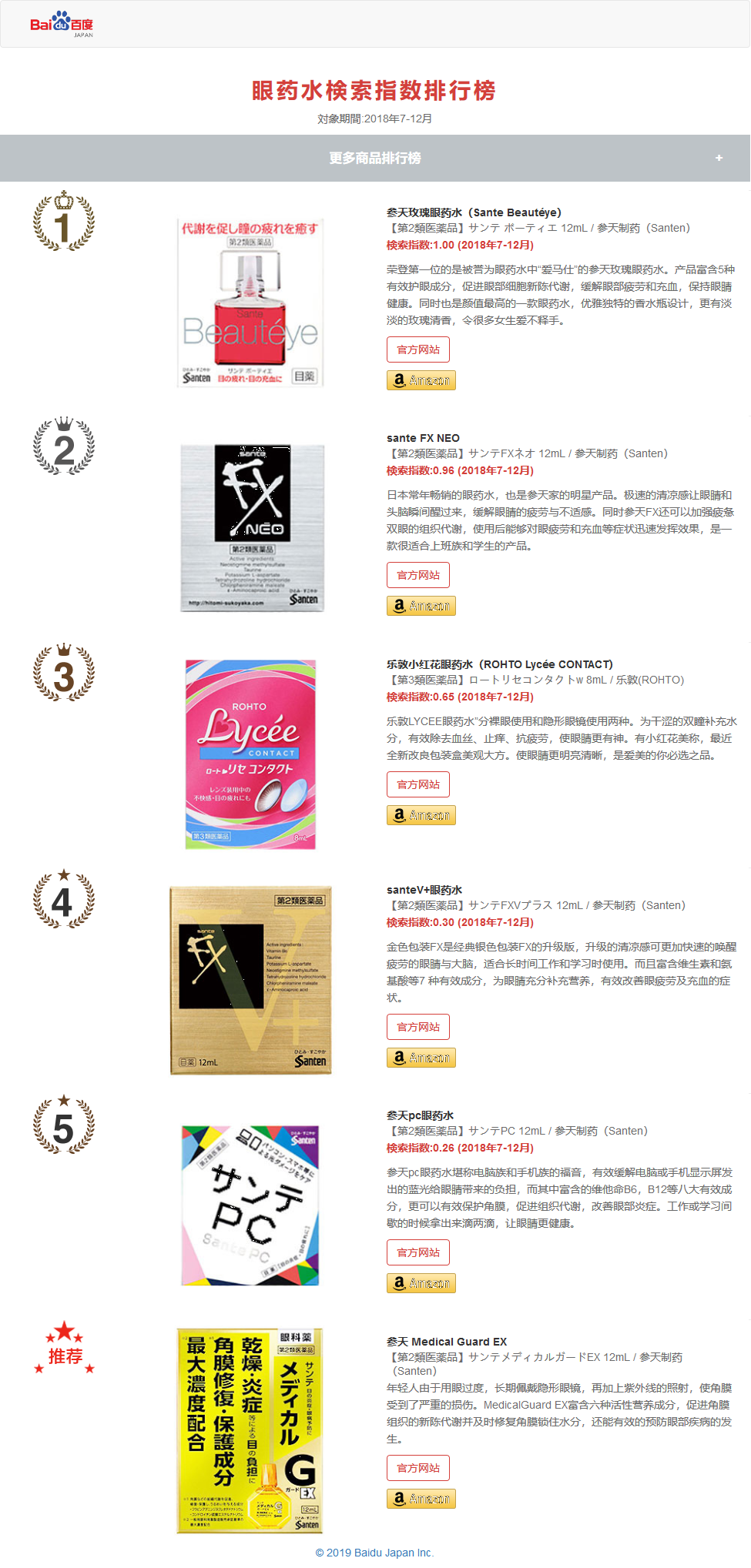 1. 参天玫瑰眼药水(Sante Beauteye) / 参天制药(Santen)