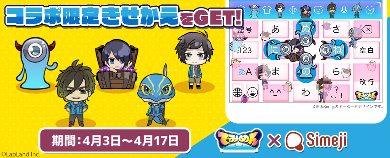 Simeji、新作女性向けゲームアプリ「でみめん」と期間限定コラボ決定!