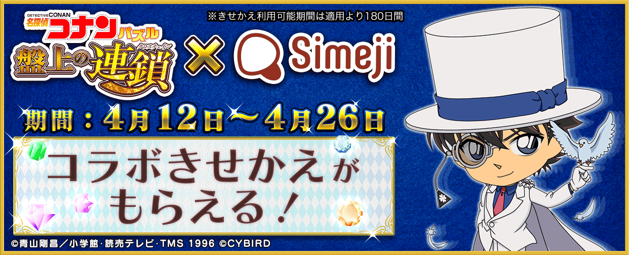 Simeji、スマートフォン向けパズルゲーム 「名探偵コナンパズル 盤上の連鎖〜クロスチェイン〜」と期間限定コラボ決定!