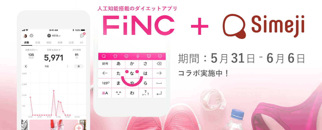 Simeji、スマートフォン向けヘルスケアプラットフォームアプリ「FiNC」と期間限定コラボ決定!