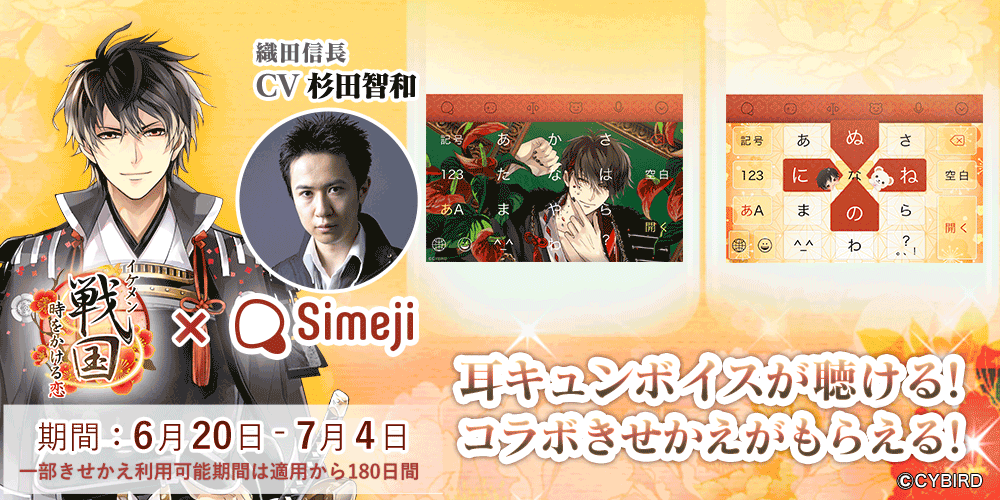 ダウンロードNo.1キーボードアプリ*「Simeji」、 大人気スマホ恋愛ゲーム「イケメン戦国◆時をかける恋」の キーボードきせかえを期間限定で提供開始