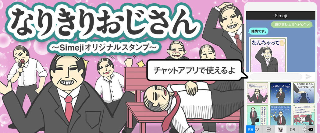 ちなみにSimeji公式「なりきりおじさんスタンプ」を使うと、あえておじさん風の会話を満喫できます。