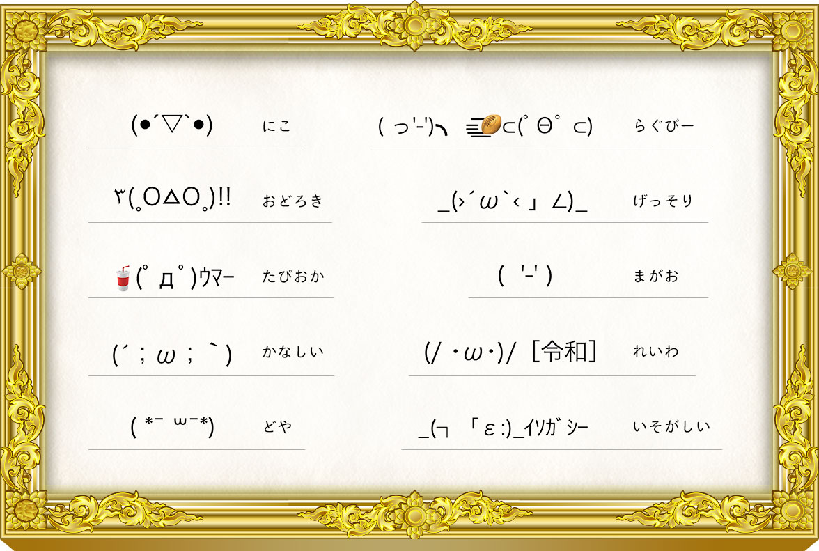 ※契約している通信事業社様やご使用中の端末によって一部表示されない顔文字や絵文字がある場合がございます。