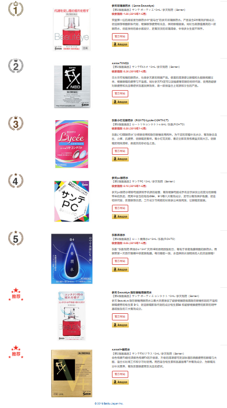 1. 参天玫瑰眼药水(Sante Beauteye) / 参天制药(Santen)