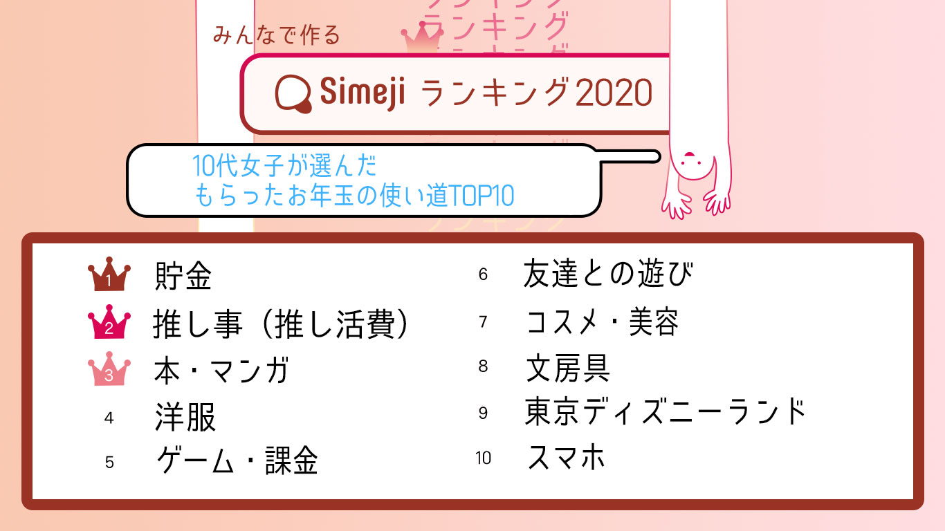 10代女子は“推し活(おしかつ)費”に使いたい!? Simejiランキング10代女子が選んだ 「もらったお年玉の使い道TOP10」