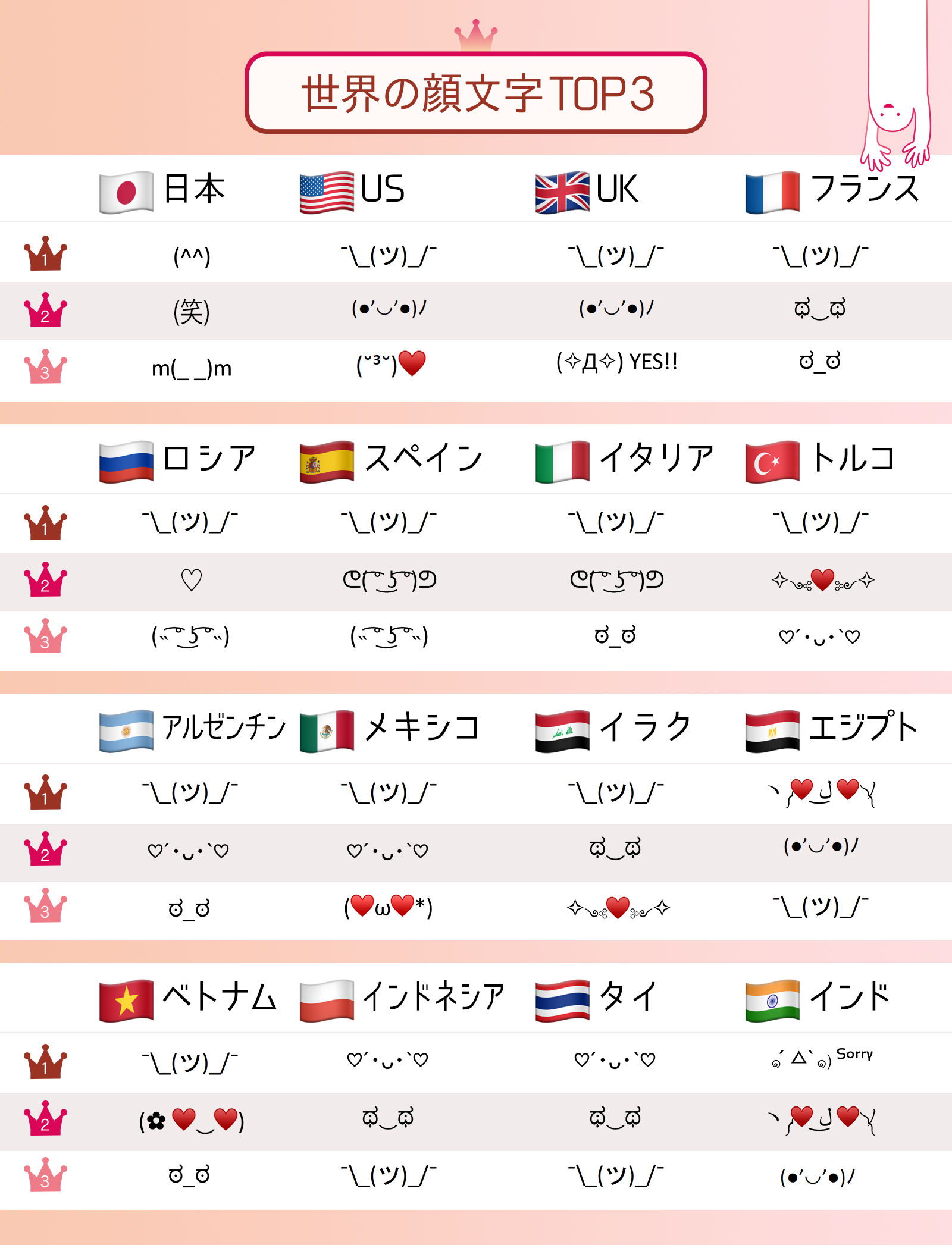 ■「世界の顔文字TOP3」結果と傾向
