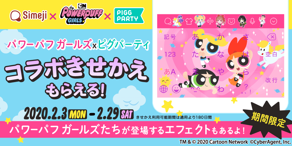 ダウンロードNo.1キーボードアプリ*「Simeji」、 人気アバターコミュニティアプリ「ピグパーティ」と 「パワーパフ ガールズ」との期間限定コラボが決定!