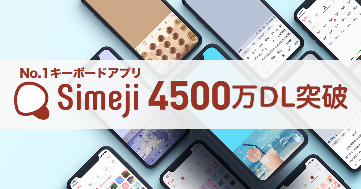 日本語入力&きせかえ顔文字キーボード「Simeji」、 iOS/Android版合わせて累計4,500万ダウンロードを突破!
