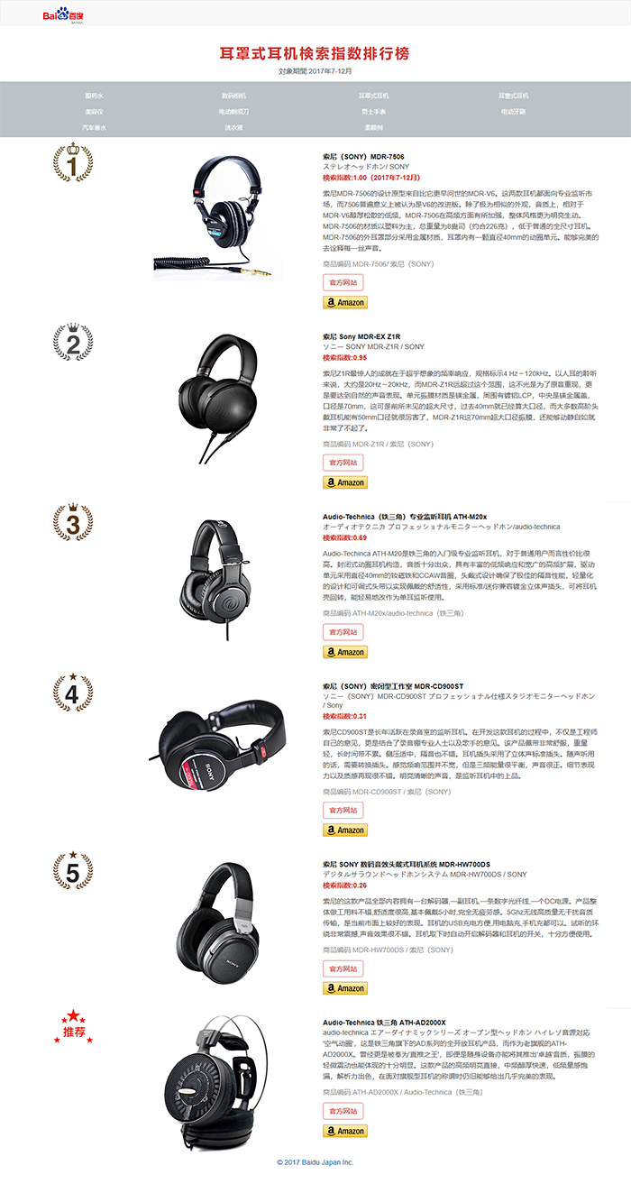 日本旅游购物—百度检索排行榜 2017年下半期(7-12月份)