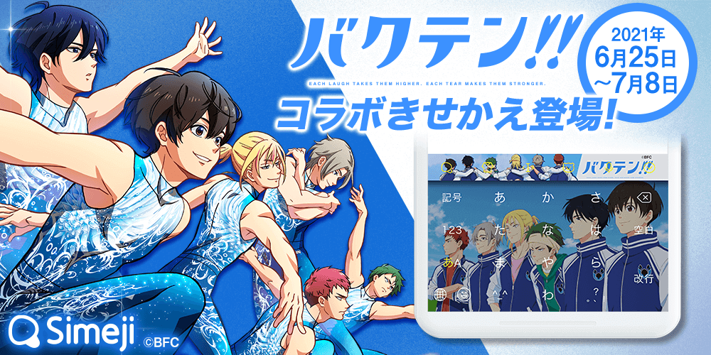 バイドゥ株式会社(本社:東京都港区、代表取締役社長:Charles Zhang)が提供する日本語入力&きせかえ顔文字キーボードアプリ「Simeji」(iOS、Android版)は、TVアニメ「バクテン!!」との期間限定コラボを本日から2021年7月8日(木)まで開催します。