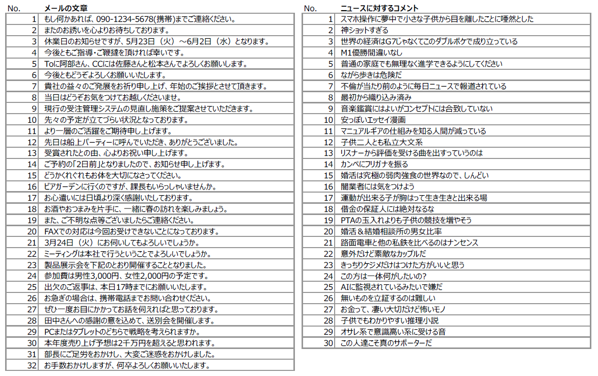 上記STEP1,2を15個のテキストで評価