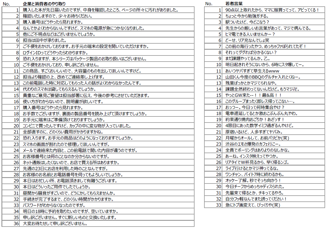 ―2サービスと比較をすると「若者言葉」「留守番電話のメッセージ」の入力精度が高い。